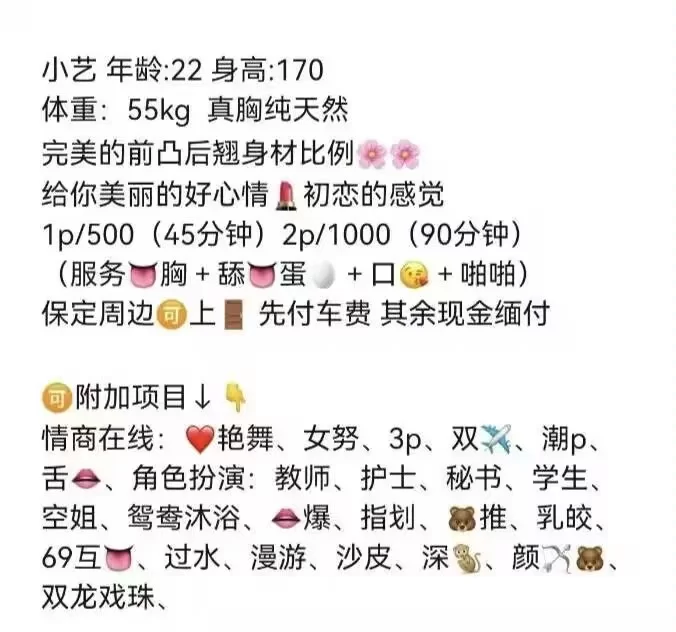 (以前我公司有个商演活动他给出的,我闺蜜引荐一起认识加上的微信,小伙子挺有礼貌的,长相还算看得过去,主要是年轻,问他能干嘛他说都可以,反正他说是字母圈的,我也没啥特殊癖好,为了挣钱三年没碰男人了,我是光为了找人陪我,一晚上下来还不错舒舒服服的,问他多少钱他就说看着给吧,扔了一千现金,愿意找的可以试试,小伙子好像啥都懂,带出去倒也没给我丢面子)